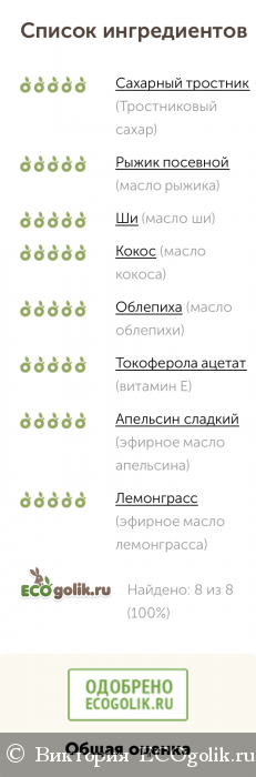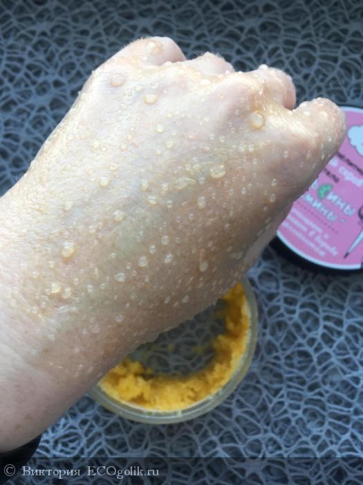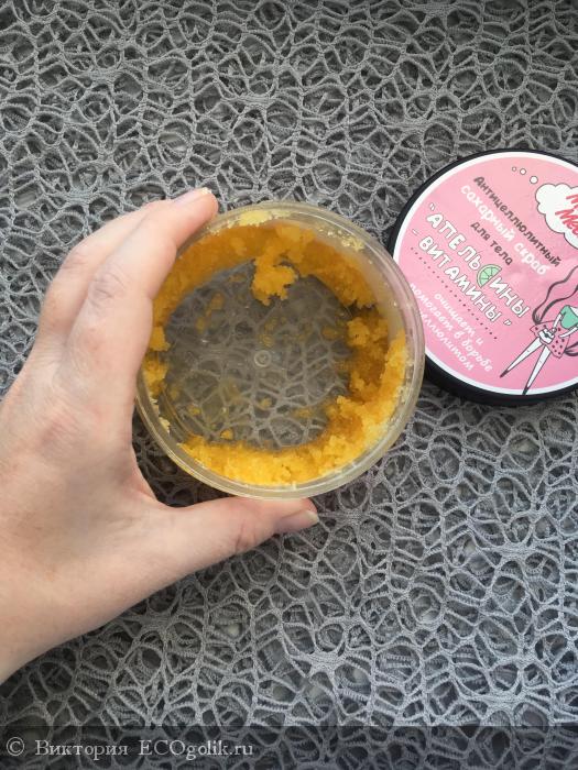 Мне нравится, что сахарные крупинки скраба небольшие по размеру. Я теперь поняла, что предпочитаю нежное отшелушивание, а жёсткость не приемлю. Сахар при нанесении и массаже довольно быстро растворяется. Кого-то этот момент категорически не устроит, а мне полученного эффекта достаточно. Для меня этот скраб является очень комфортным и более чем удовлетворяет мои потребности. В нём всего в меру: и отшелушивающего действия, и последующего результата.