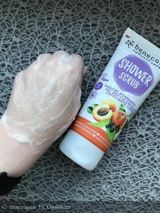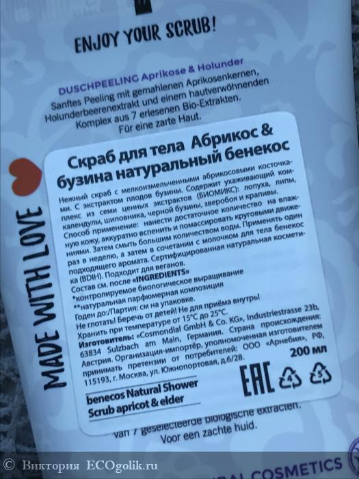 Возник у меня недавно такой вопрос: как вы применяете скраб для тела? Нет, я не о процессе нанесения на тело и последующей проработкt проблемных мест. Дело в том, что скраб я применяю после этапа очищения, но читала на портале отзывы, где девочки рассказывают о том, что полностью заменили гель для душа исключительно на скраб. Не знаю, насколько это правильно, но факт остаётся фактом. Суть в том, что в таком случае, на мой взгляд, будет крайне уместен скраб для тела «Абрикос и бузина» от Benecos. Я так считаю, потому что это средство вобрало в себя лучшие качества от геля для душа и скраба.