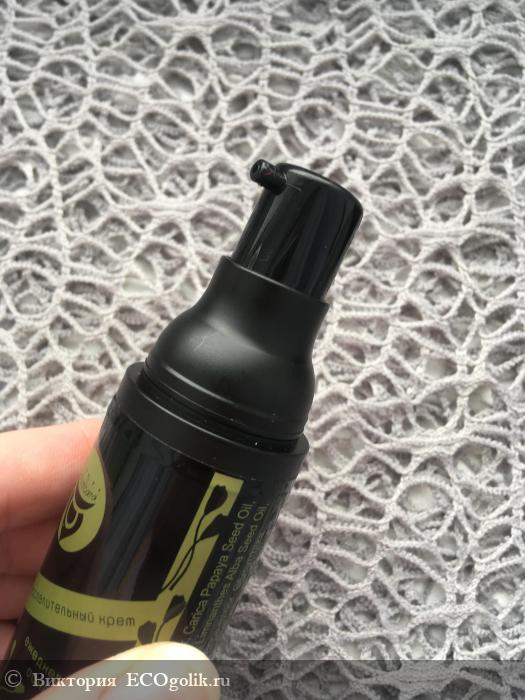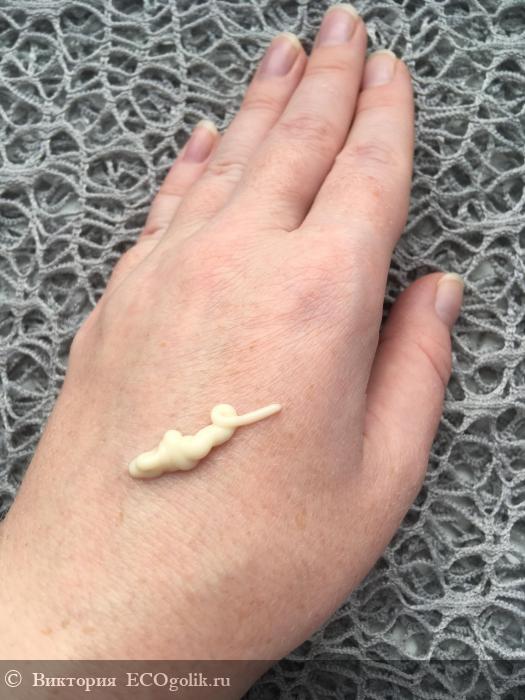 Противовоспалительный крем я приобрела ещё летом. Как только получила душевную посылку с шишками, не могла себе отказать в удовольствии опробовать долгожданный крем. Погода тогда ещё стояла тёплая. Как обычно, умывшись, я нанесла его на лицо. Крема в количестве от одного нажатия на вакуумный дозатор мне капельку не хватило, поэтому в дальнейшем я наносила его в количестве от примерно полутора нажатий. Крем, кстати, по консистенции маслянистый и насыщенный.