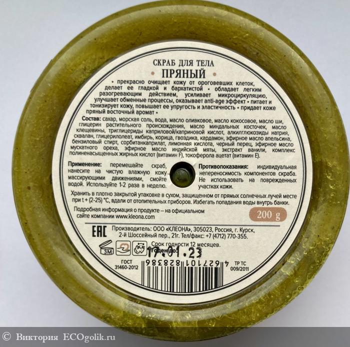Речь в данном отзыве пойдёт о скрабе для тела «Пряный» от «Kleona».