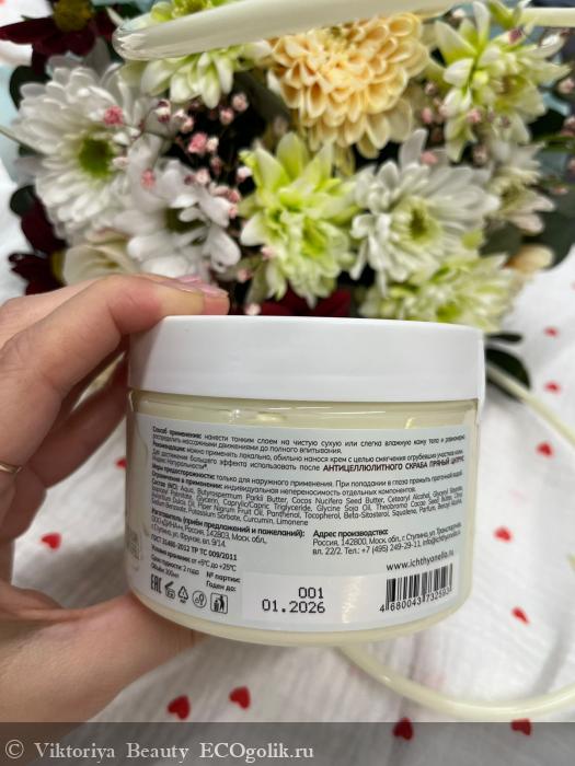 Баттер объемом 300 мл, его цвет молочный, консистенция густая и жирная, а аромат просто невероятный и очень долго держится на коже. Срок годности - 2 года, но после вскрытия необходимо использовать в течение 6 месяцев. Он также имеет пластиковую защитную мембрану.