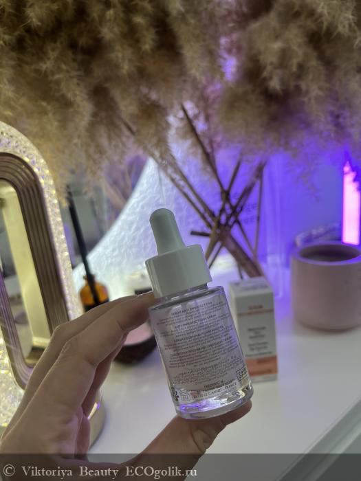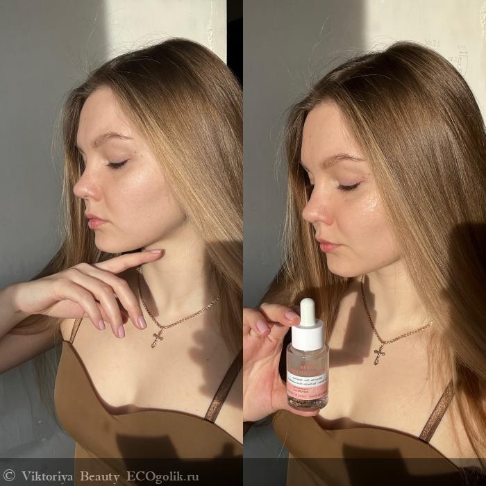 Я наношу сыворотку чаще всего ночным этапом ухода: после очищения — увлажняющего тоника или тоника с ниацинамидом, затем наношу сыворотку и закрываю её кремом. Чтобы смягчить воздействие, если кожный барьер нарушен, рекомендую лайфхак с нанесением крема до и после сывороток с активами — индивидуально. Я не могу утверждать, нужно ли делать так же, используя данный продукт, но помним, что я до сих пор восстанавливаю последствия сильного гормонального сбоя и стресса, поэтому моя кожа требует особенного подхода и внимания. Зимой я могу позволить себе наносить сыворотку утром под макияж, пока активного солнца нет. Хочется отметить, что макияж на сыворотку ложится шикарно: кожа подсвечена изнутри благодаря сыворотке, после нанесения она становится бархатистой, а тональное средство держится весь день, не скатываясь и не окисляясь.