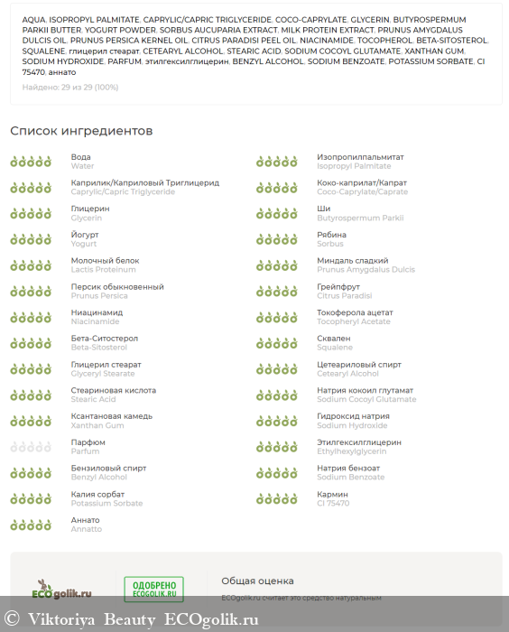 Viktoriya Beauty: Тонизирующий крем-йогурт для тела Индекс натуральности