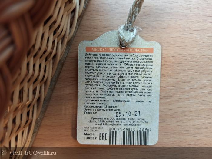 Изначально мыло и люфа жестковатые, но под теплой водой становятся по-мягче. Мыло хорошо пенится и качественно очищает кожу. Смывается пена легко.