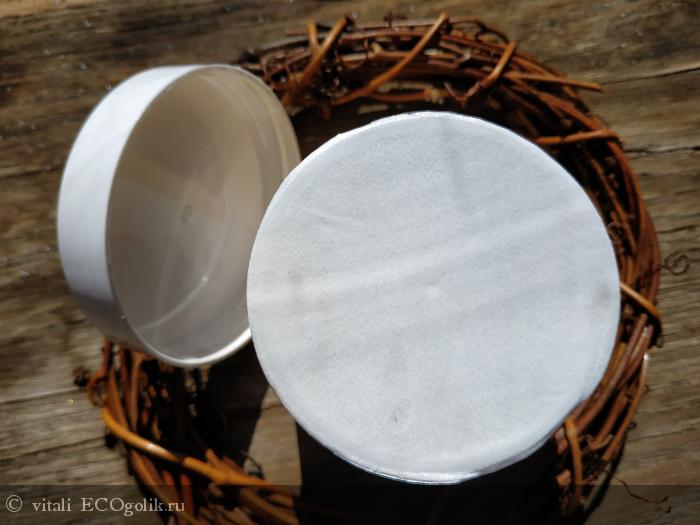 Баночка имеет закручивающуюся крышку. Под крышкой крем запечатан фольгой. Объем - 100 мл (странно, но на сайте указан объем 110 мл). Достаточно удобно, что банка небольшая, но рука спокойно достанет до дна, когда крем закончится. Цена крема - 490 рублей.