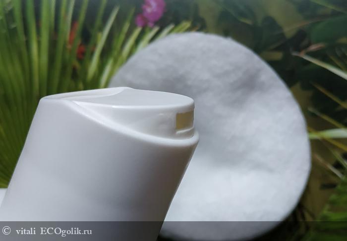 Тоник находится в пластиковом флаконе и достаточно большом, объемом - 250 мл. Флакон имеет крышку диск-топ, которая при нажатии открывается, а в закрытом в виде надежно защищает средство от протекания.