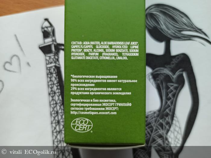 Вода, сок алоэ*, каприлиловые/каприловые глюкозиды, гидролизованные протеины люпина*, бензиловый спирт, натрия бензоат, натрия гидроксид, отдушка, тетранатрия глутамат диацетат.