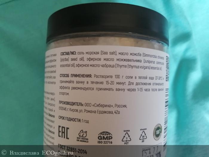 Ну так, Расслабляющая соль для ванны «Снятие усталости и мышечного напряжения» после занятий спортом с можжевельником и чабрецом. Скажу так, просто один из любимых продуктов у Сиберины теперь. Она нереально расслабляет тело, мышцы, дезодорирует, успокаивает. перед сном она просто незаменима. Я заметила, если я принимаю ванну с этой солью, то засыпаю быстро и сплю крепко, без тревог и сновидений. Как в ямку проваливаюсь. Очень классная соль!