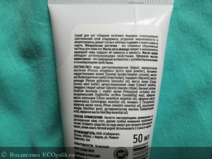 Что заметила в этом скрабе интересного, это то, что Скраб для ног "Гладкие пяточки" от Сиберины, если им пользоваться регулярно, практически не лениться, когда вы принимаете душ по вечерам и пройтись им по пяткам и всей стопе, то ваши ноги будут в идеальном состояния без педикюров в салонах красоты и педикюрных носочков.