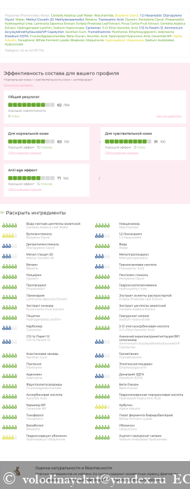 Как я уже писала выше, в составе сыворотки просто огромный список действующих компонентов , которые направлены на увлажнение кожи.