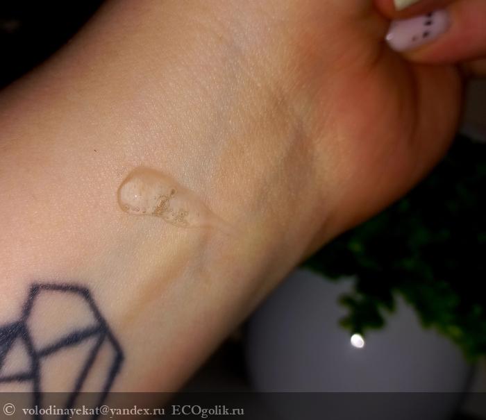 Гель полностью прозрачный, без твердых частиц, густой и хорошо разносится по коже лица, не течет.