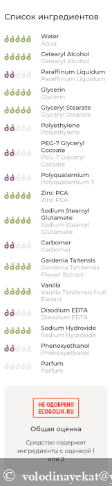 Компания позиционируется как натуральная, однако в составе есть компоненты с оценкой 1 и 2 .