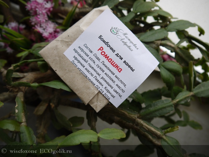 Упаковка в крафте. Развернув ее, я увидела 2 бомбочки диаметром 5 см примерно. Они рельефные, не круглые. И особой красотой не отличаются. Можно разглядеть молотую ромашку. Стоимость 100 р. - очень даже приемлимая цена.