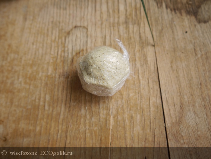 Внутри упаковка - пищевая пленка. Видимо, чтобы не просыпалось и не размокало, если вдруг чего. Думаю, это лучше, чем в более толстый ролик. Больше пластика, понимаете?
