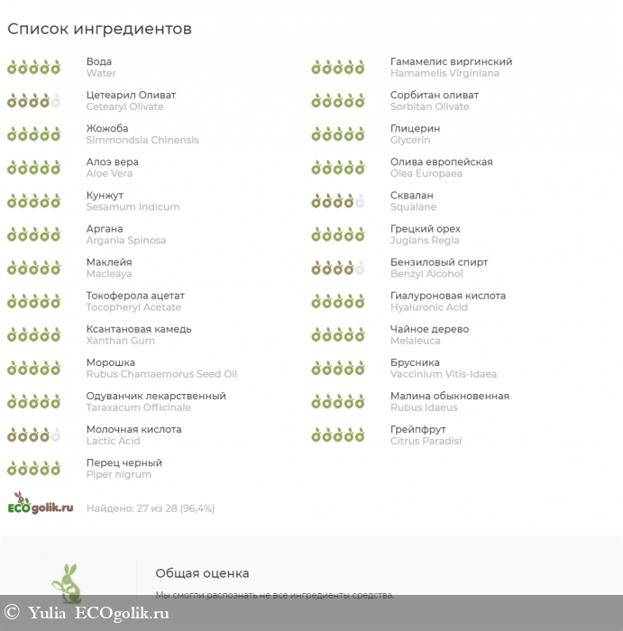 Масло гранатовой косточки осталось нераспознанным сервисом проверки состава. Однако в натуральности этого компонента сомневаться не стоит.