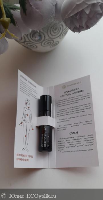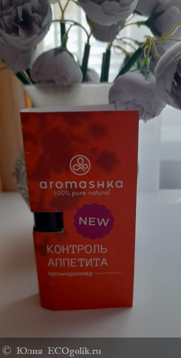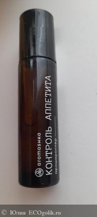 У бренда AROMASHKA есть аромароллеры разного назначения. У меня вызвал большой интерес аромароллер Контроль Аппетита. Это маленький флакончик из тёмного стекла.