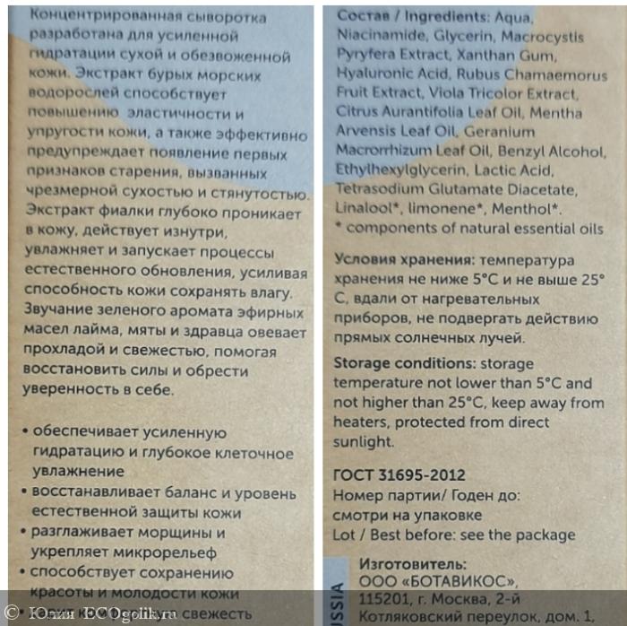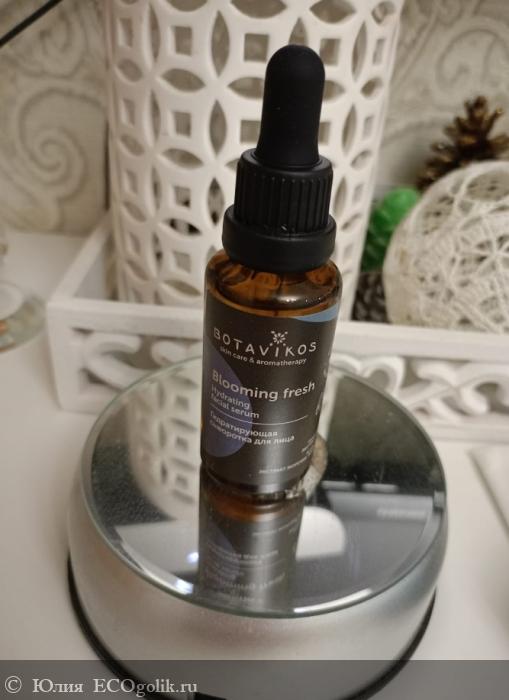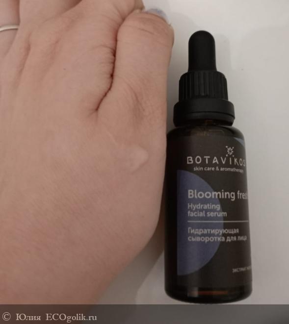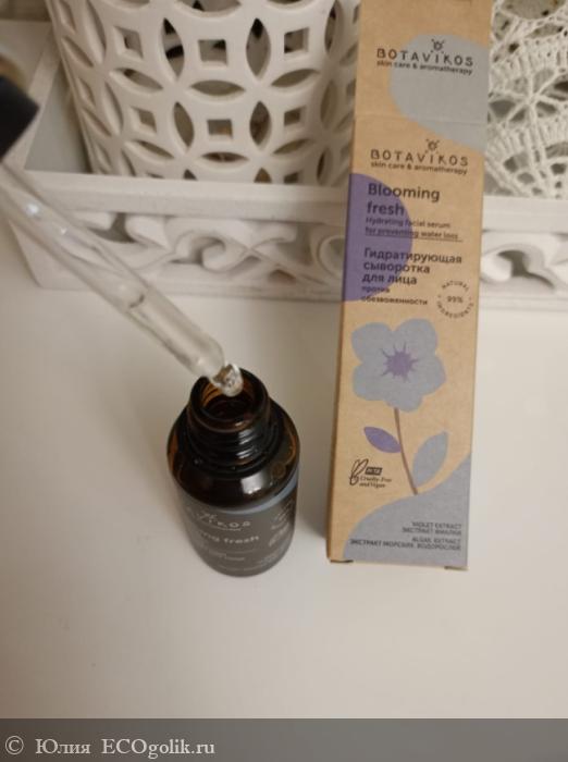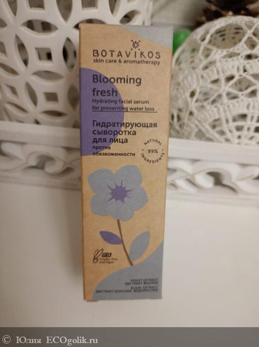 Гидратирующая сыворотка для лица Botavikos, оказалась спасением для моей сухой кожи. Сыворотка безопасна, т.к. содержит в составе 99% натуральных компонентов. Сыворотка находится в картонной коробочке, на главной стороне которой изоображен цветок.
