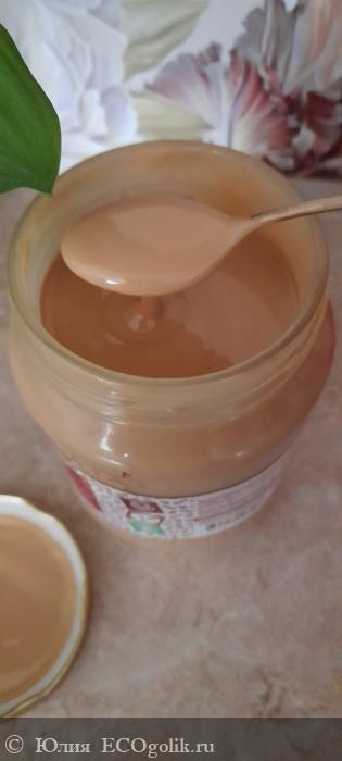 Паста однородная, средней густоты. Пахнет жареными орехами. К стати, перемолоты они на каменных жерновах.