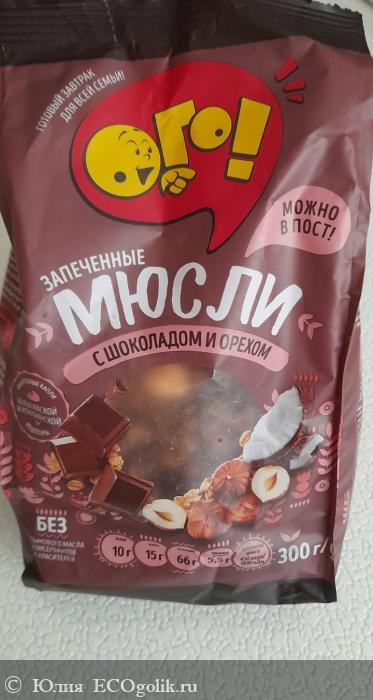 Как- то раньше не обращала внимания на пачки с надписями Мюсли и Гранола. Предпочтение отдаю обычным традиционным кашам и такого рода продукты обходила стороной. Но всё- же не устояла и решила попробовать Мюсли запеченые с шоколадом и орехом от ТМ "ОГО".