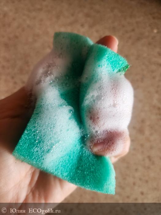 Но как только вы намочите губку и проведёте по бруску, он начинает превращаться в густую, шелковистую, очень обильную пену. Расходуется средство крайне экономно, так как достаточно буквально пару раз провести по губке, чтобы получить большое количество пены.