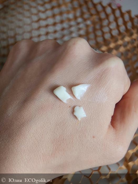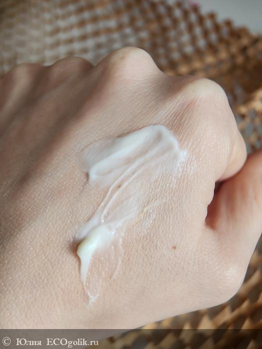 Текстура - крем достаточно плотный, насыщенный, не растекается, через дозатор выходит с трудом.
