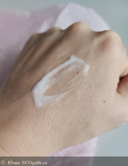 Текстура – крем белого цвета, по текстуре напоминает легкое молочко.