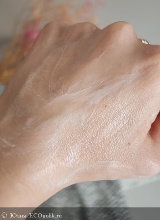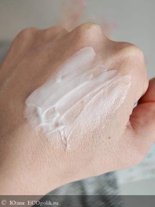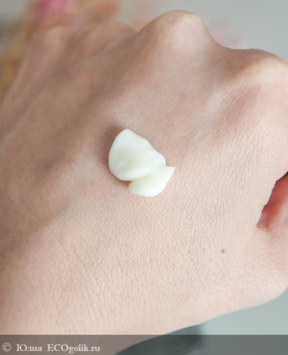 Текстура - крем достаточно плотный, держит каплю, не растекается.