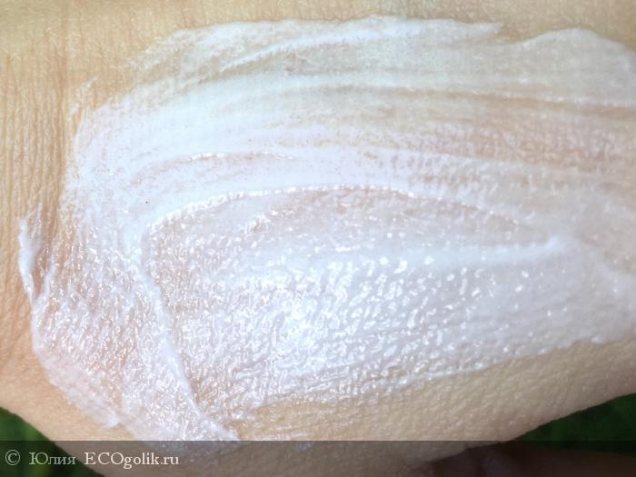 Органолептика: скраб представляет собой густой лёгкий крем белого цвета без видимых вкраплений, аромат еле уловимый, цветочный.