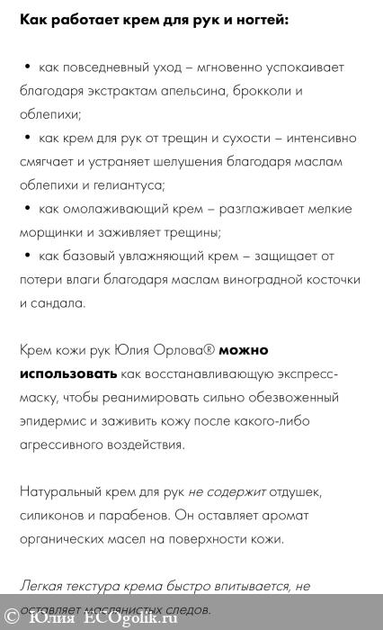 Юлия: Крем для рук питательный с апельсином и облепихой от бренда «Юлия Орлова»