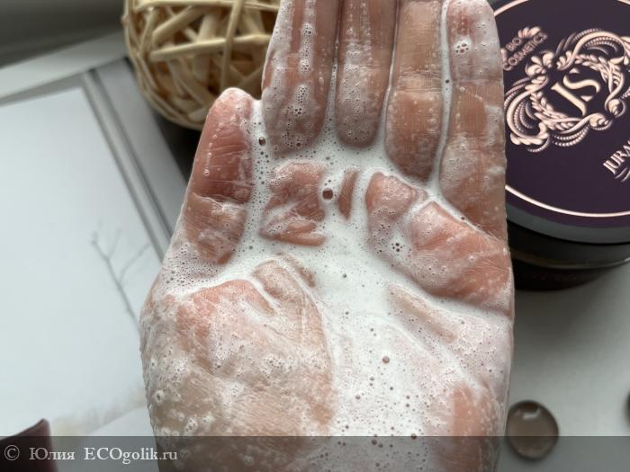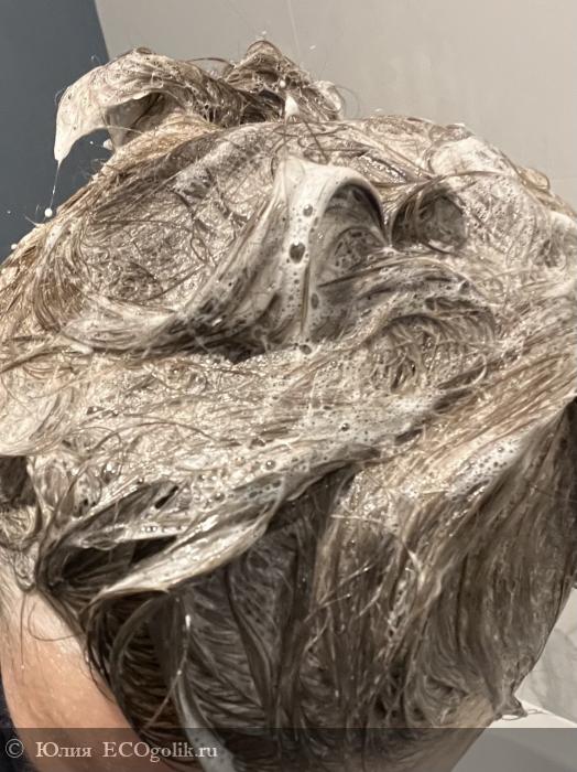 Когда я вдоволь проскрабирую всю голову, начинаю постепенно добавлять воду на волосы. И скраб начинает преобразовываться в нереально пышную и мягкую пену.