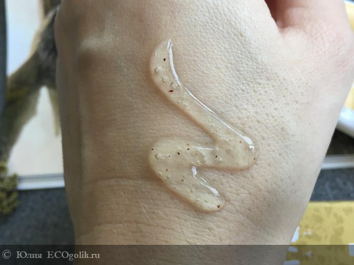 Органолептика: прозрачный бесцветный жидкий гель. Консистенция такая, что даже без нажатия из перевёрнутого тюбика пилинг начинает капать.