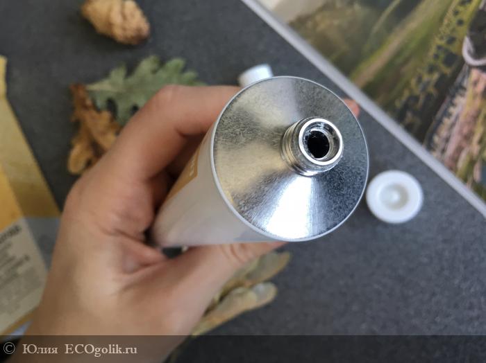 Внутри коробки находится тюбик из алюминия и специальный наконечник для использования пилинга.