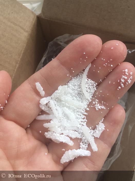 Посмотрите, что как выглядит порошок: мыльные хлопья с мелкими гранулами порошка.