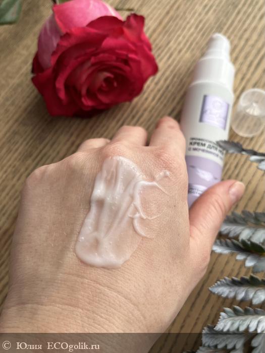 Органолептика: крем белого цвета, густой консистенции, текстура легкая. Аромат очень мне подошел - это свежие травы с небольшой сладостью.