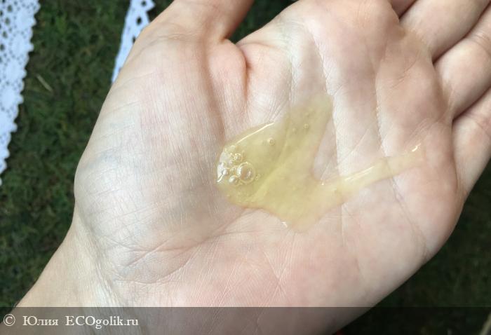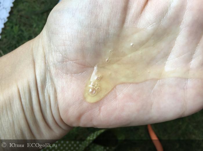 Органолептика: прозрачный, светло-жёлтого цвета, гелеобразная текстура, консистенция средней густоты, но не настолько жидкая чтобы убежать с ладони.