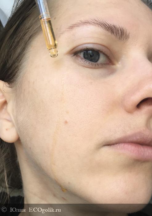 Мой опыт применения: для комфортного нанесения на лицо и шею мне требуется капель 6 сыворотки. Непосредственно на лицо её капать неудобно, поскольку она очень жидкая и моментально утекает.
