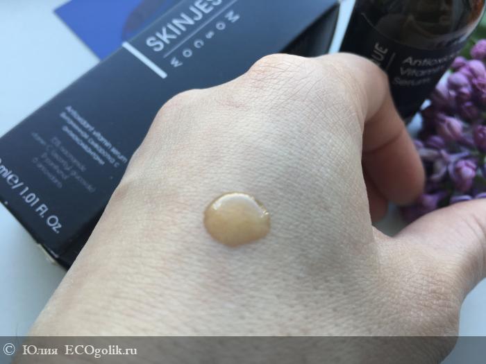 Сыворотка Skinjestique не конфликтует с последующими уходовыми средствами, также прекрасно ведёт себя под тональным кремом.