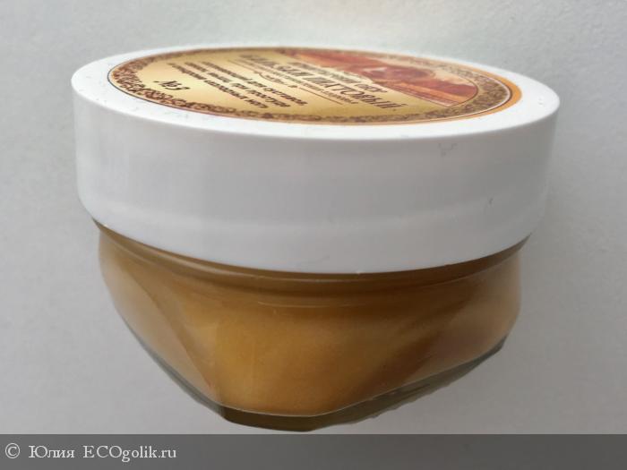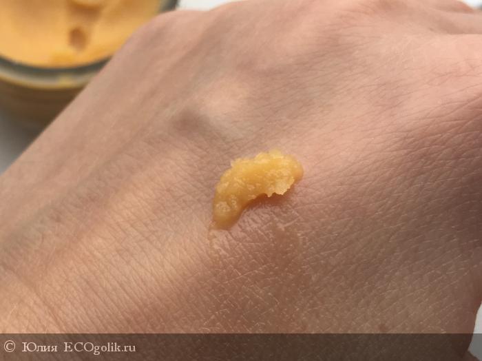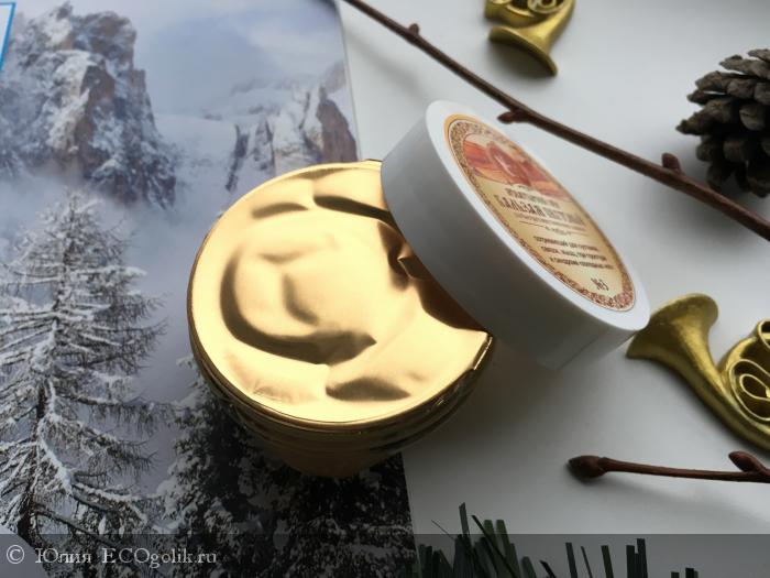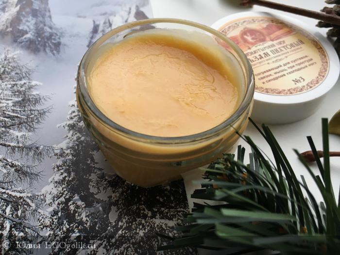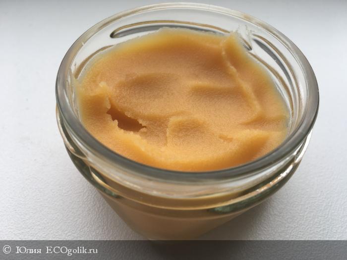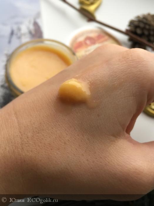 Органолептика: бальзам представляет собой что-то среднее между кремом и маслом. Цвет желтоватый. Аромат преимущественно хвойный, достаточно яркий, но вместе с тем приятный. До вскрытия упаковки, оно у находилось не в самом прохладном месте квартиры, поэтому выглядело вот так...