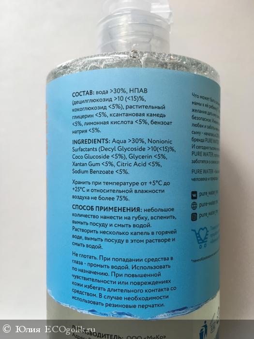 Я познакомилась с продукцией Мико ещё во время беременности, когда решила отказаться от всей химии в пользу натурального. Всё, что я пробовала в этой марке, оставило только положительное впечатление. Поэтому, после рождения ребёнка я, конечно же, продолжила знакомиться с Мико, прикупив моющее средство для детской посуды Pure water. Начну с лозунга «вместе сохраним воду чистой»... Западает под корку головного мозга с первых строк. Сразу чувствуешь себя причастной к благородной миссии спасения планеты от загрязнения). За это приятное самоощущение уже плюс один балл)). Далее по самому средству. Запах- отсутсвует. Цвет-прозрачный. Пены от одной капли на губке образовалось не очень много, но она долго не заканчивалась. (Хотя по этому поводу производитель уточняет, что пенообразование зависит от жёсткости воды,- может у кого-то будет и больше). Можно уменьшить расход средства, если мыть посуду в миске или тазике, а не под проточной водой. Тогда одной капли хватает на 5 литров (только я советовал бы мыть таким образом всё таки не очень масленную и жирную посуду). Pure water у меня отмывает всю грязь и жир, посуда после него приятно скрипит чистотой). Также оно хорошо подходит для мытья овощей, фруктов и игрушек, так как полностью смывается водой. А ещё из него можно делать мыльные пузыри! Такое вот многофункциональное средство). Из недостатков я бы обозначила только если пластиковую тару (она не выглядит такой экологичной, как стекло). А во всём остальном я очень довольна моющим средством и рекомендовала бы его всем к использованию)). Цена средства - 160 рублей за 450 мл.