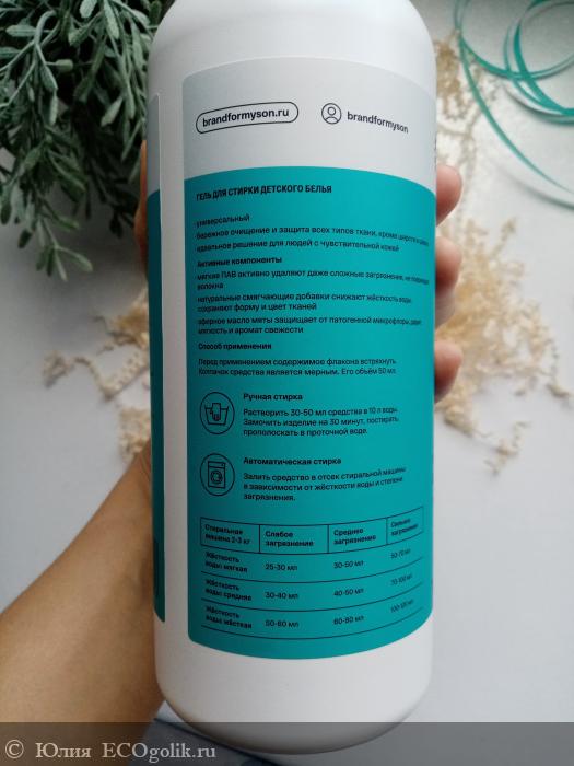 Юлия: Экологичный гель для стирки детского белья Brand for my son - хороший гель с приятным ароматом и биоразлагаемыми компонентами!