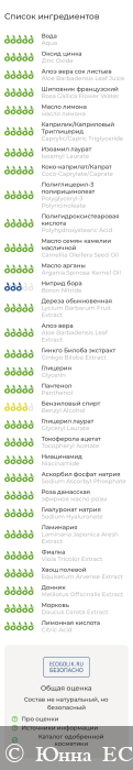 Aqua, Zinc Oxide (оксид цинка), Aloe Barbadensis Leaf Juice (гель алоэ вера), Rosa Gallica (розы) Flower Water, Citrullus Vulgaris Seed (арбуза) Oil, Caprylic/Capric Triglyceride, Isoamyl Laurate, Coco-Caprylate/Caprate, Polyglyceryl-3 Polyricinoleate, Polyhydroxystearic Acid, Camellia Oleifera Seed (камелии) Oil, Argania Spinosa Kernel (арганы) Oil, Boron Nitride, Lycium Barbarum (Goji) Fruit (ягод годжи) Extract (and) Laminaria Japonica Aresh (ламинарии) Extract (and) Aloe Barbadensis Leaf (алоэ вера) Extract (and) Ginkgo Biloba (гинкго билоба) Extract (and) Glycerin, Panthenol, Benzyl Alcohol (and) Glyceryl Laurate, Tocopheryl Acetate (витамин Е), Niacinamide, Sodium Ascorbyl Phosphate (витамин С), Rosa Affinis Rubiginosa Oil (эфирное масло розы), Sodium Hyaluronate, Laminaria Japonica Aresh (ламинарии) Extract, Viola Tricolor (фиалки) Extract, Equisetum Arvense (хвоща) Extract, Melilotus Officinalis (донника) Extract, Daucus Carota (семян моркови) Extract, Citric Acid.