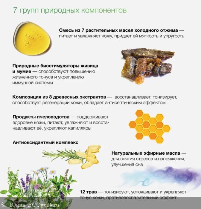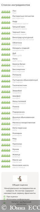 Экстракты деревьев: кора березы, кора дуба, березовые почки, хвоя кедра, побеги ели, цвет липы, хвоя пихты, лист березы.