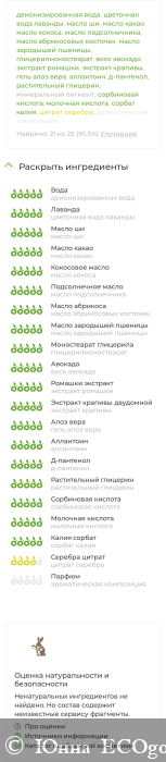 Состав оставляет только восхищение, ведь он обладает натуральностью и одобрен сайтом Экоголик