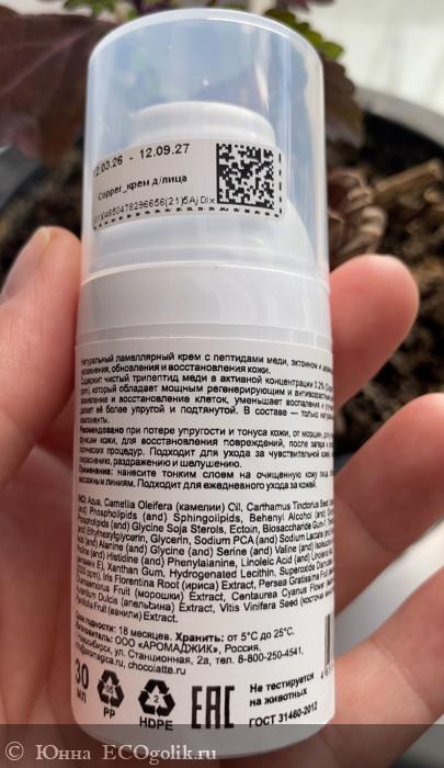 Всем привет прекрасные читатели моих отзывов ❤️❤️❤️ Сегодня я хочу с Вами поделиться своими впечатлениями о креме для лица восстанавливающий с пептидами меди, эктоином и церамидами COPPERPEPTIDE от ChocoLatte