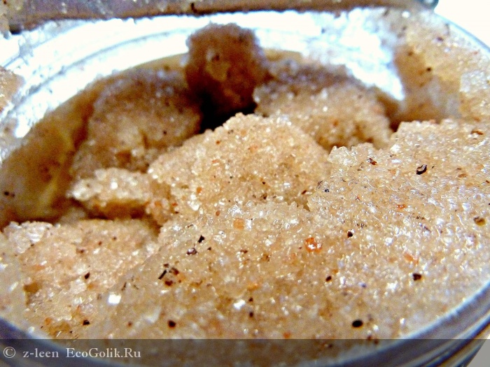 При контакте с влагой сахарный скраб начинает таять, отдавая коже все полезности, содержащиеся в нем.