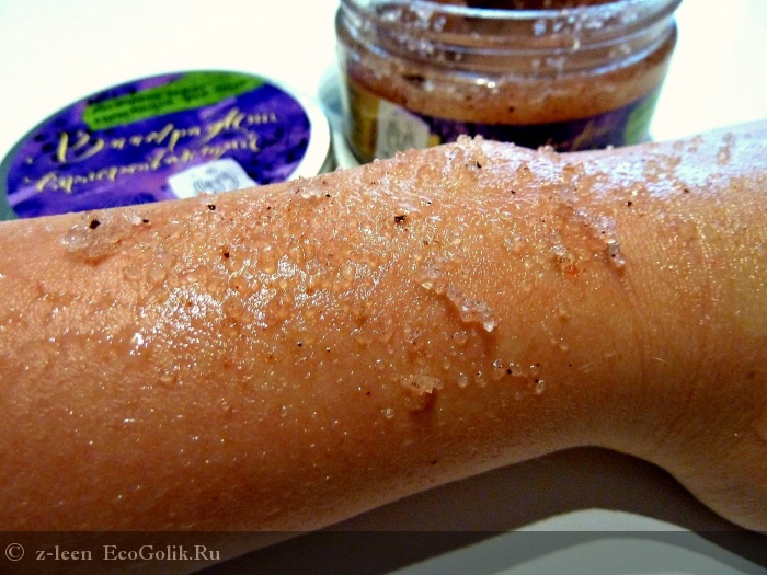 Наношу я скраб на хорошо распаренную в душе кожу массажными движениями.