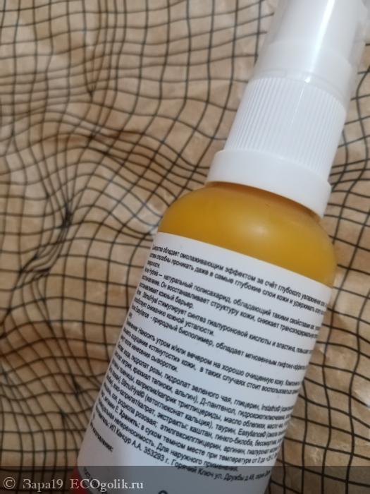 Эта сыворотка облепиховая и гиалуроновая, с добавлением сквалана, протеинов пшеницы, а также натуральных масел. Конский каштан снимает отечность и укрепляет сосуды на лице, поэтому эту сыворотку можно смело назвать и антикуперозной. Гиалуроновая кислота интенсивно увлажняет кожу, предупреждая появление морщин, обвислости кожи. Отрадно, что в этом продукте нет парабенов, силиконов, красителей, отдушек, каких бы то ни было синтетических компонентов.