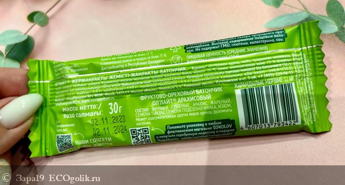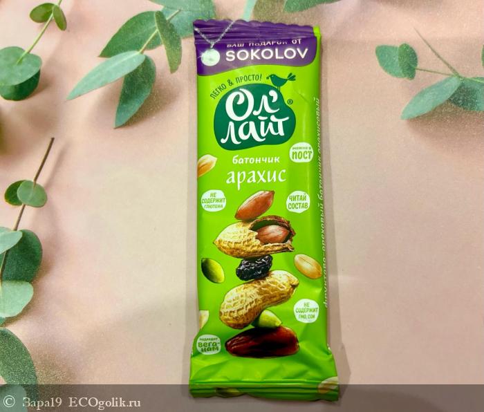 Если вы хотите сократить количество сладостей в своем рационе, но при этом вам хочется чего-нибудь вкусненького, то советую обратить внимание полезные фруктово-ореховые батончики Ол'Лайт. В ассортименте представлены разные вартанты, а я поделюсь своими впечатлениями от следующего варианта. Это батончик Ол'Лайт "Арахисовый".