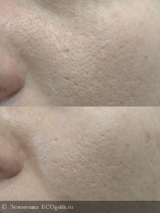 Ну, результат маска показала с первого раза в виде отличного матирования и более ровного цвета кожи! Поры стали светлее, отсюда и более ровный цвет кожи. Это для меня большой +. Так как моя жирная кожа блестит и имеет сероватый оттенок