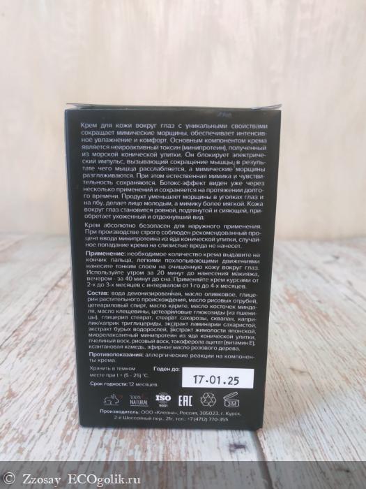 Я уже писала о моём новом омолаживающем креме для лица от Kleona. Крем мне очень нравится, но для нежной кожи вокруг глаз хочется особой защиты и внимания, поэтому приобрела ещё и данный крем.